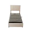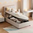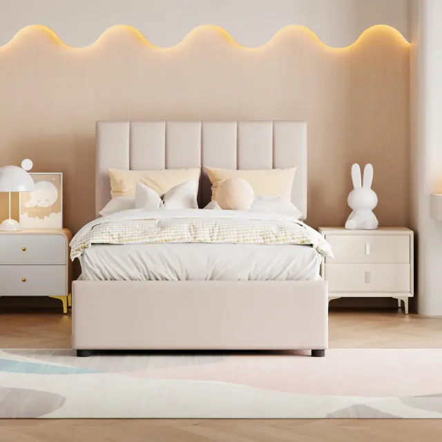 Otroška postelja 90x200 cm, oblazinjena postelja s shrambo, perilo, prijazno do kože, bež