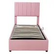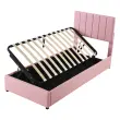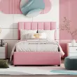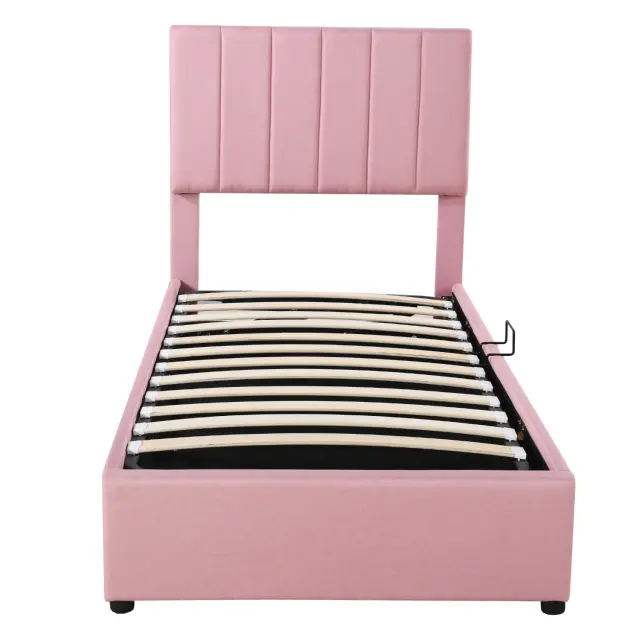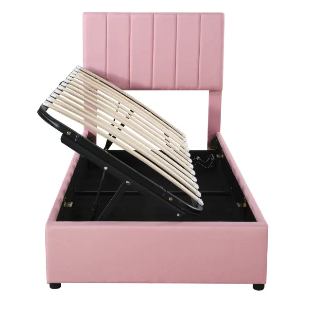 Otroška postelja 90x200 cm s prostorom za shranjevanje, iz prijetnega perila, roza barve.