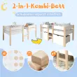 Otroška postelja Bett s predalom in zaščito pred padcem, masiven bor - 90x200 cm - bela in hrastova