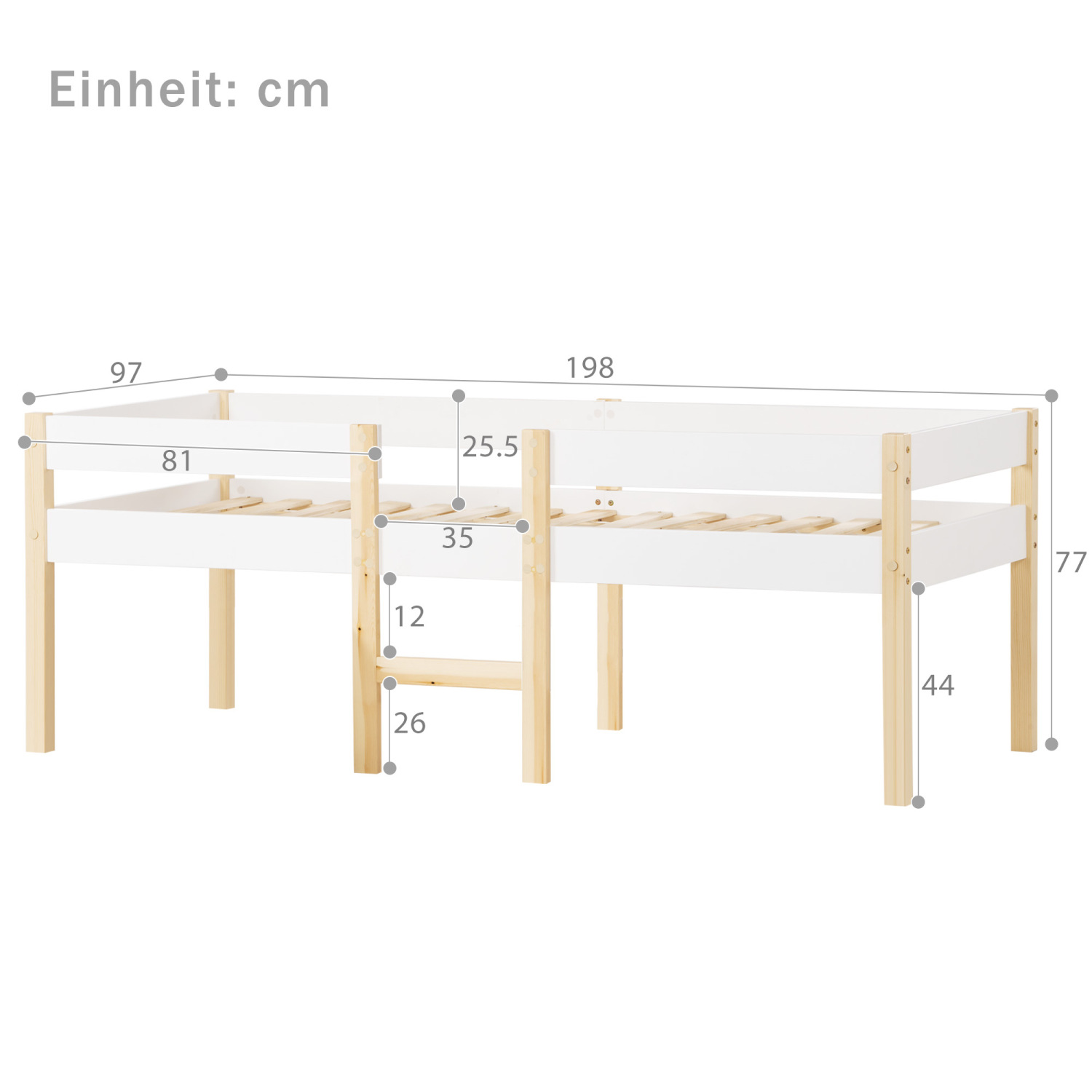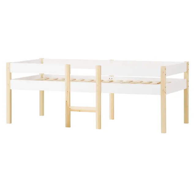 Otroška postelja Bett z zaščito pred padci, masiven bor - 90x190 cm - bela in hrastova