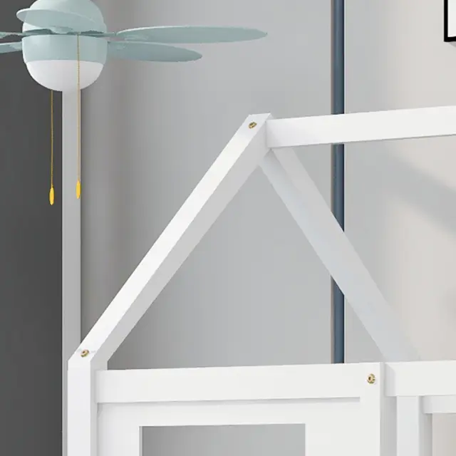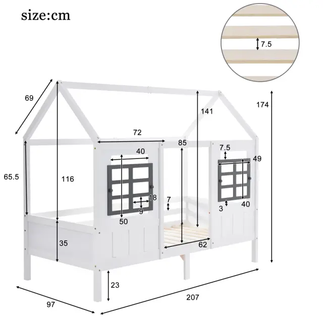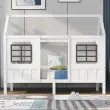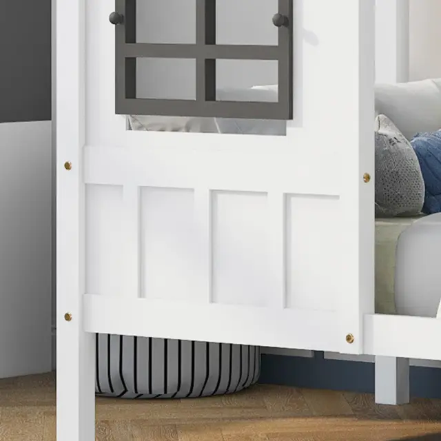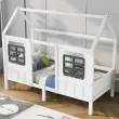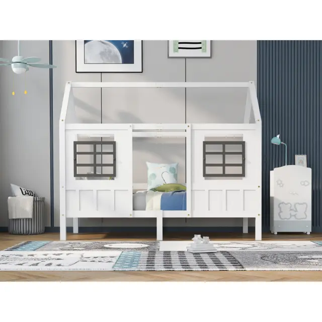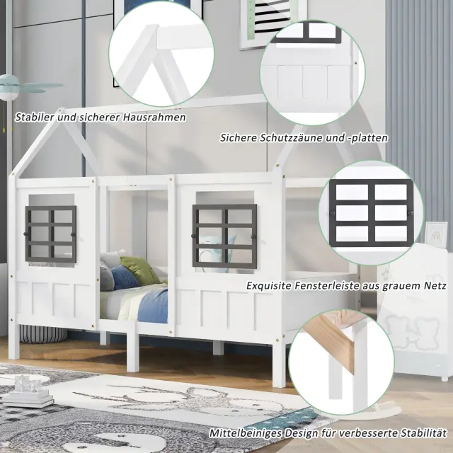 Otroška postelja, enojna dnevna postelja z dvema oknoma, okvir iz borovega lesa/MDF, bela (200x90cm)