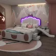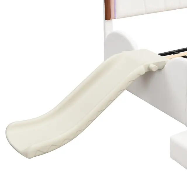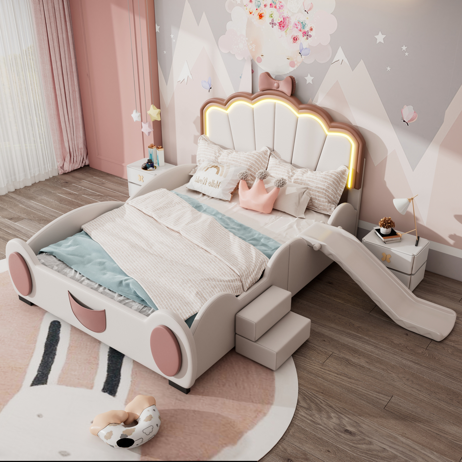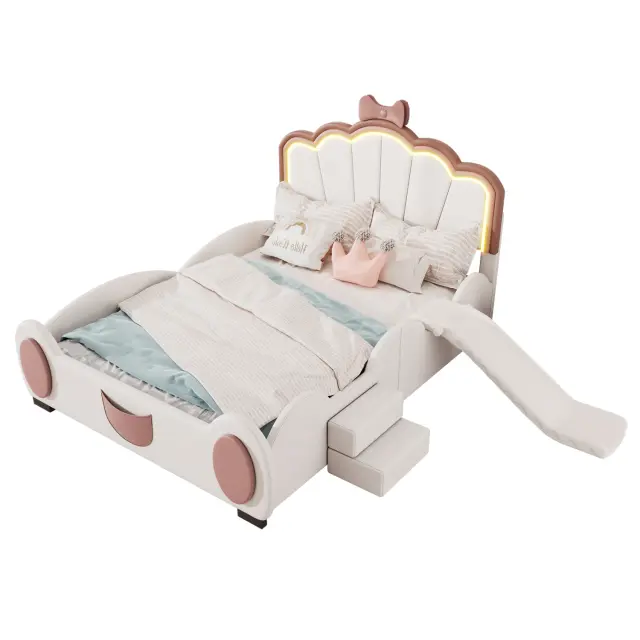 Otroška postelja Metulj 140x200 cm z LED lučko, toboganom in lestvijo (roza/bela)
