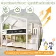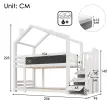 Otroška postelja na drevesu 90x200 cm z dimnikom, bela, vključno s tablo za pisanje s kredo