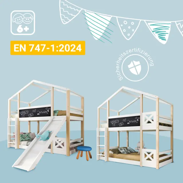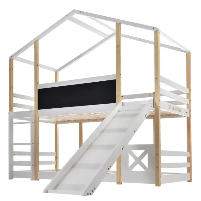 Otroška postelja na drevesu s toboganom in lestvijo 90x200 cm, pograd v naravni in beli barvi