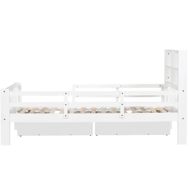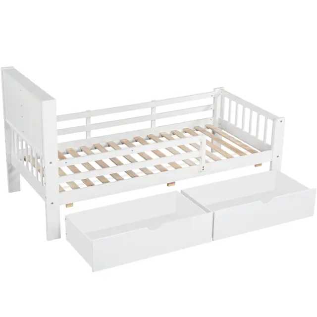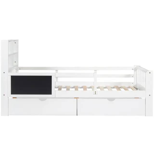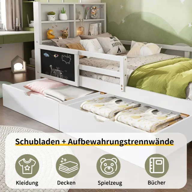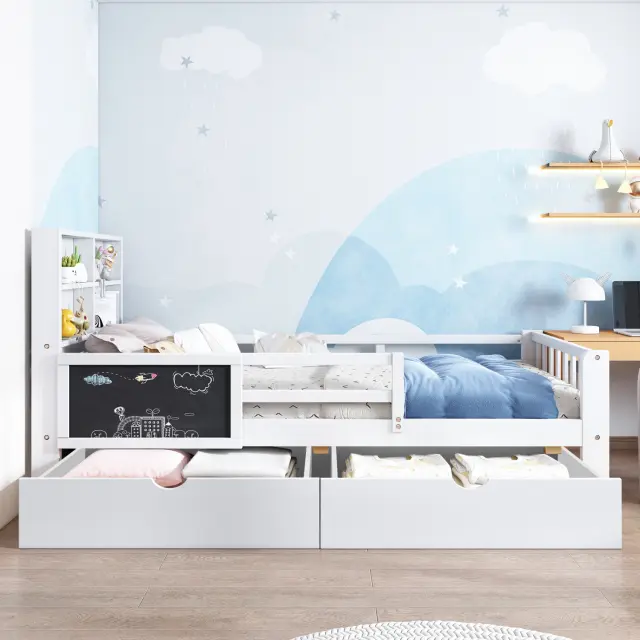 Otroška postelja s predali in tablo za pisanje krede, bela, 90*200