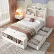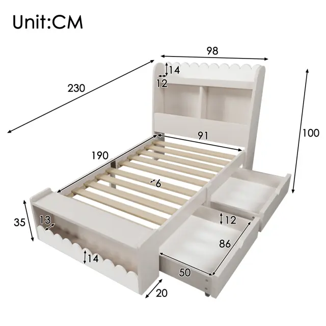 Otroška postelja s prostorom za shranjevanje, polico in klopjo, 90x190 cm, lesena, bela/hrastova
