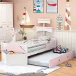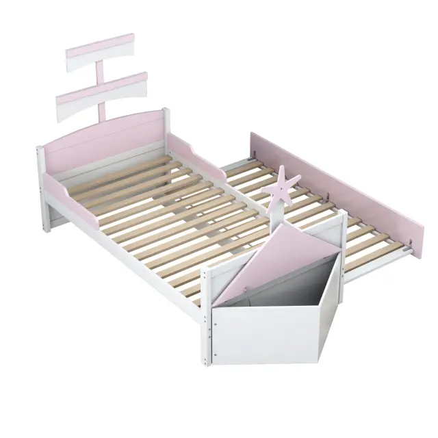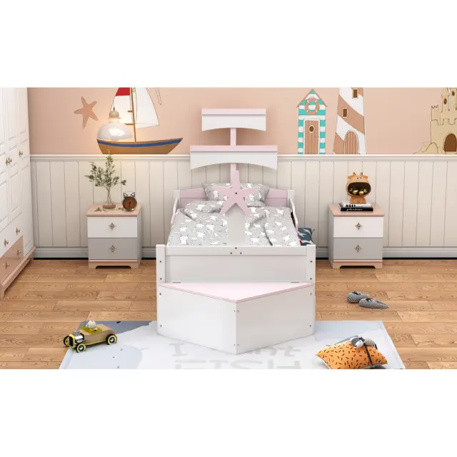 Otroška postelja v obliki jadrnice 90x200 z izvlečnim ležiščem in omarico za shranjevanje, roza