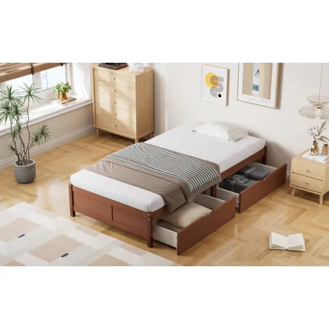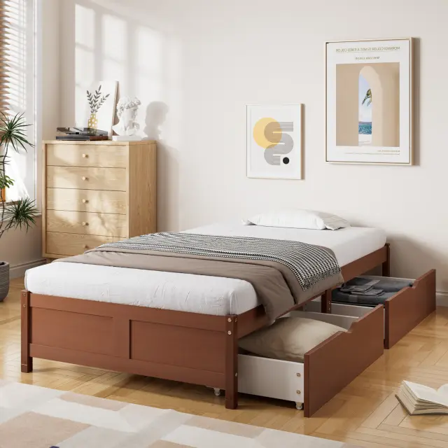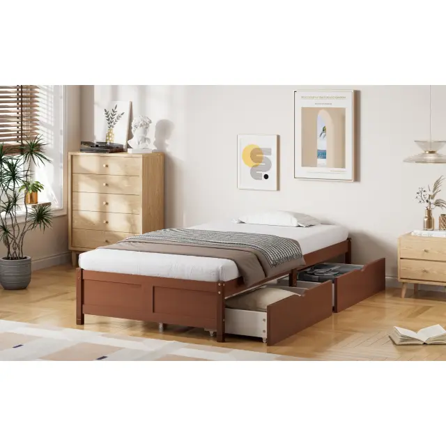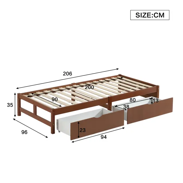 Otroška postelja z dvema predaloma, borov les, vintage rdečkasto rjava, 90x200 cm