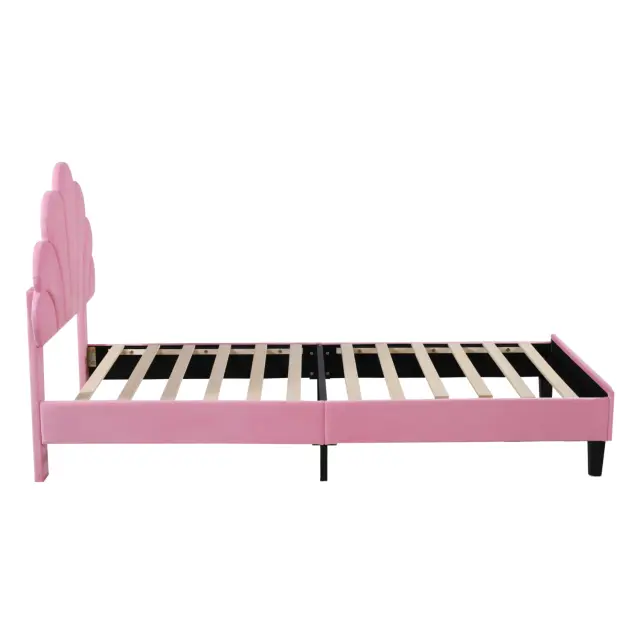 Otroška postelja z oblazinjenim žametom in cvetličnim vzglavjem, 90x200 cm