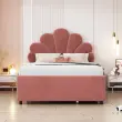 Udobna otroška postelja (90x200 cm), vzglavje v obliki cvetnih listov, 2 predala, robustna, nosilnost 200 kg. Bež/roza. Delno sestavljena.