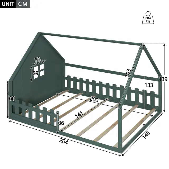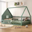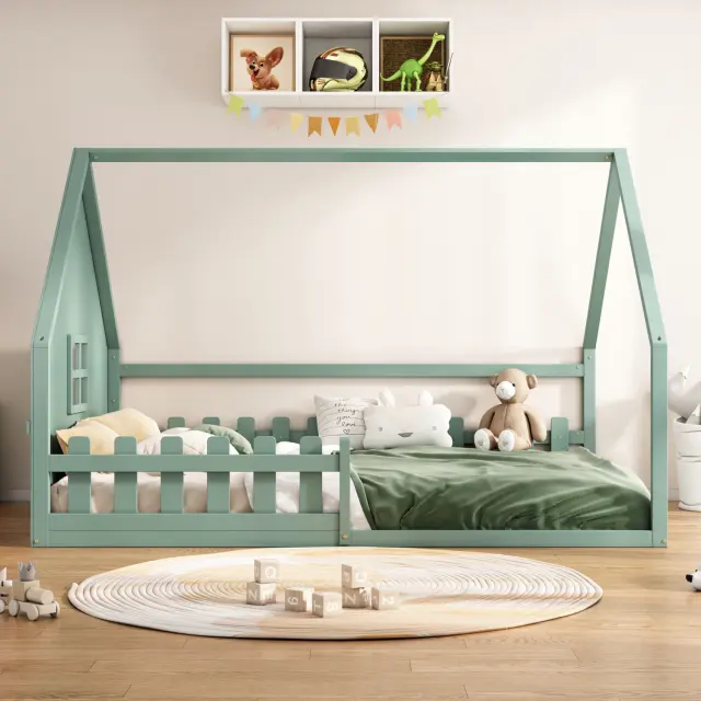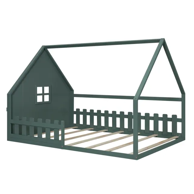 Otroška postelja z ravnim dnom 140x200cm, borov les, zelena
