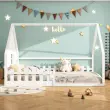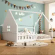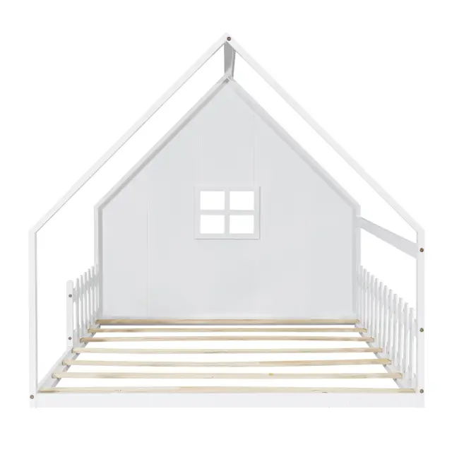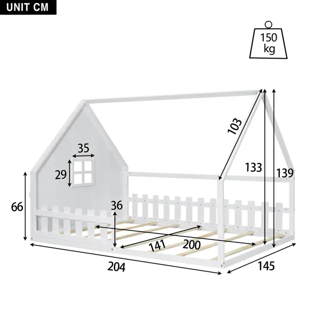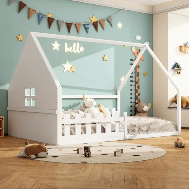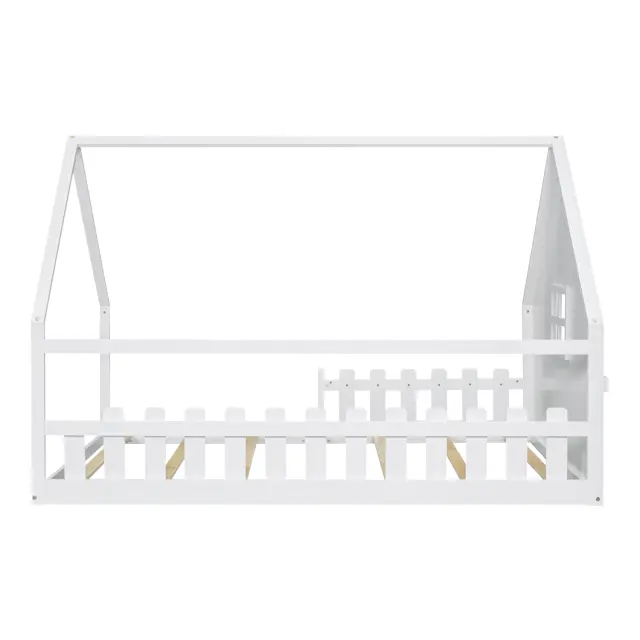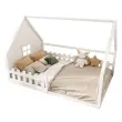 Otroška postelja z ravnim ležiščem 140x200 cm, borov les, bela, z ograjo