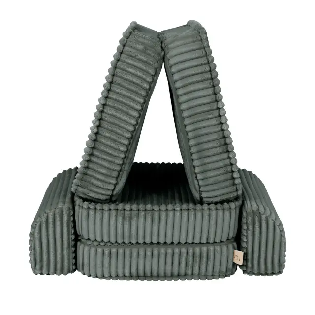 👶 Pocket Sofa Basic je del kolekcije Churros, ki je bila ustvarjena posebej za otroke. Ta kolekcija izstopa zaradi tkanine, ki je navdihnjena s churrosi – debelega rebrastega žameta s teksturo v stolpcih. Široke črte tkanine v kombinaciji z mehko in prijetno površino ustvarjajo popolno okolje za igro, sprostitev in počitek. Tkanina v vzorcu ribje kosti z rahlo razcepljenimi nitkami kolekciji Churros ne daje le mehkobe, ampak tudi estetski videz.