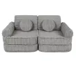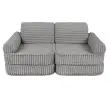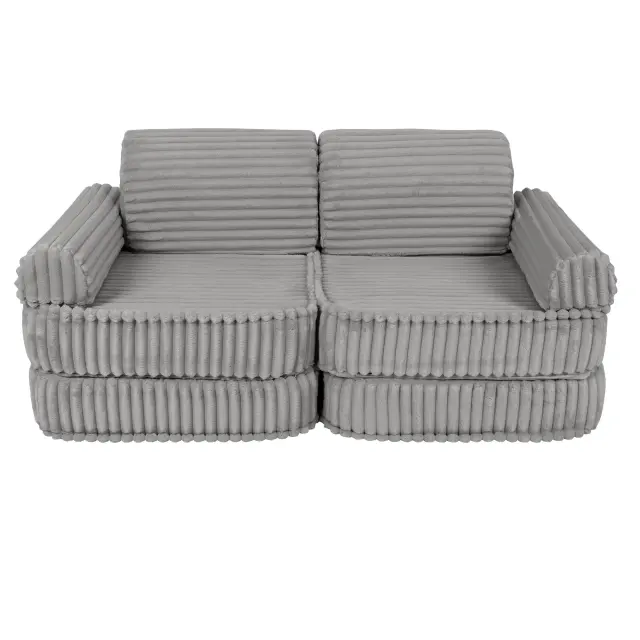 • Vsestranska modularna zasnova: Kavč je sestavljen iz 12 elementov, ki jih je mogoče razporediti na različne načine, vključno z obliko popolne postelje. Idealna rešitev za otroško sobo, igralni kotiček, bralni prostor ali popoldanski počitek.
