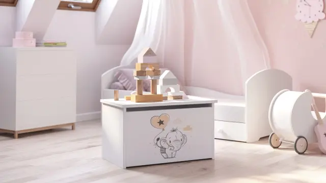 DARIA igrača skrinja - enostavno urejanje otroške sobe Univerzalna in moderna zasnova Od zdaj naprej bo urejanje otroške sobe pravo veselje, saj vam bo pri tem pomagala moderna DARIA igrača skrinja v univerzalni beli barvi, ki se bo prilegala vsakemu notranjemu slogu otroške sobe. Zaradi prostornega notranjega prostora je DARIA igrača skrinja popoln prostor za shranjevanje najljubših igrač in drugih otroških zakladov. Otroci vanjo lahko shranijo tako velike kot majhne igrače, kar pomaga ohranjati sobo urejeno. Visokokakovostni materiali DARIA skrinja je narejena iz trdne pohištvene plošče, kar zagotavlja vzdržljivost in trdnost. Površina skrinje je skrbno obdelana z lepljencem, kar ji daje eleganten videz in jo ščiti pred mehanskimi poškodbami. Enostaven dostop Enostaven sistem dviga, uporabljen pri DARIJI, omogoča tudi najmlajšim otrokom enostaven dostop do notranjosti skrinje. Ta praktična rešitev omogoča otrokom, da skrinjo odpirajo in zapirajo sami, kar spodbuja njihov razvoj in neodvisnost. Večfunkcionalnost in vsestranskost Vsestranskost skrinje omogoča njeno uporabo ne le v otroški sobi, temveč tudi v drugih prostorih doma, kot sta hodnik ali spalnica. En kos pohištva in mnoge uporabe! DARIA skrinja bo funkcionalen dodatek v vsako otroško sobo in hkrati njena nenavadna dekoracija. Povzetek Investirajte v DARIA igrača skrinjo in odkrijte, kako enostavno je ohranjati otroško sobo urejeno, hkrati pa dodati eleganten pridih notranjosti. DARIA igrača skrinja je praktična in estetsko privlačna rešitev, ki bo zagotovo všeč vam in vašemu otroku. S svojo trdno konstrukcijo, kapaciteto in enostavnim dostopom je DARIA skrinja popolna izbira za vsako družino, ki skrbi za udobje in razvoj svojih otrok. Tehnične specifikacije: - Trdna in robustna konstrukcija - Pokrov se odpre navzgor z plinskim cilindrom - Laminirana pohištvena plošča - Izdelek narejen iz certificiranih surovin - Izdelek je namenjen za samostojno montažo