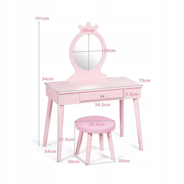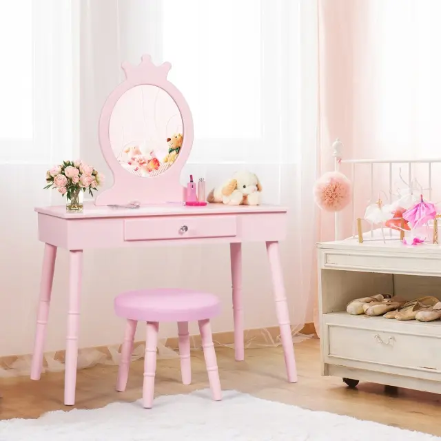 Otroška toaletna miza s predalom in stolčkom Dekliška mizica za ličenje v slogu evropske princese roza