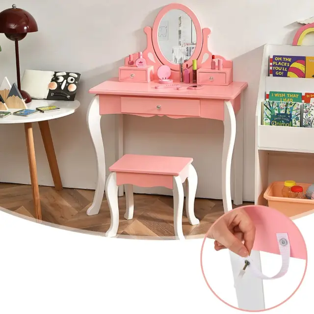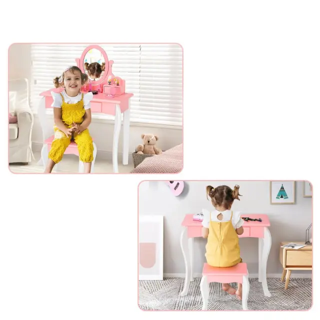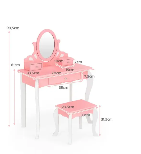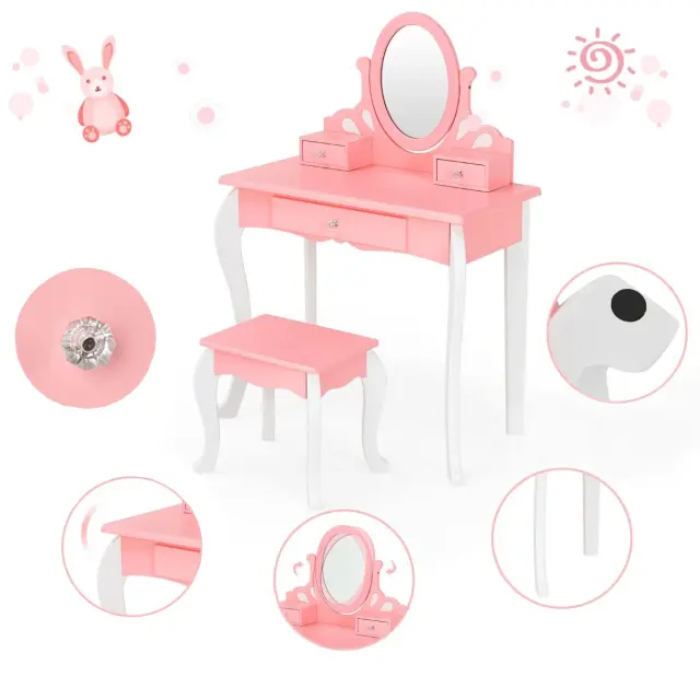 Otroška toaletna miza z ogledalom in 360° stolčkom