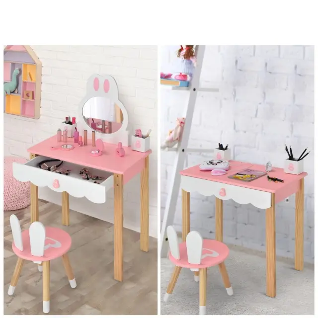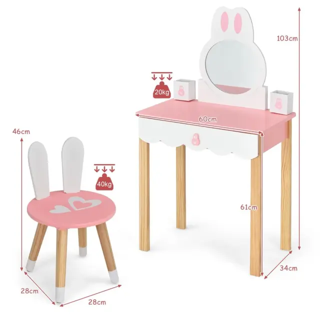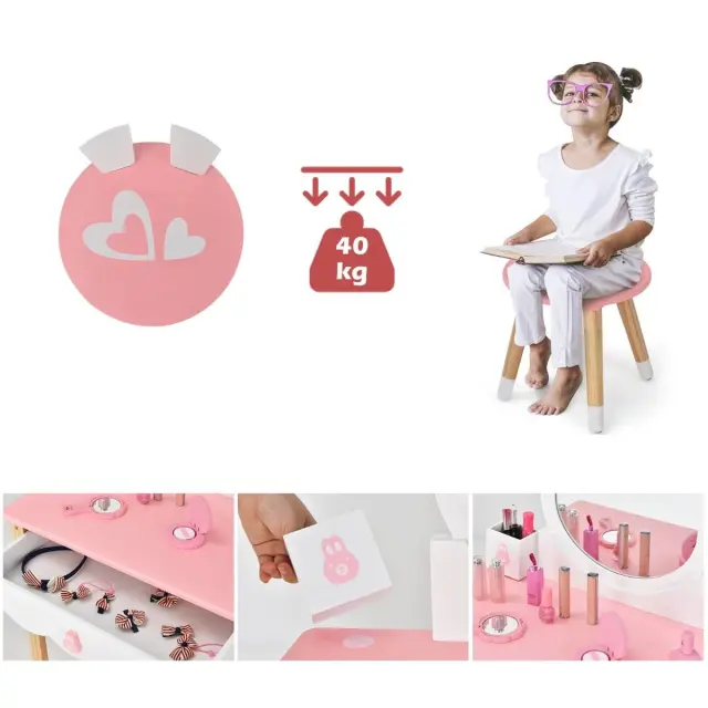 Otroška toaletna mizica s stolčkom Princeska toaletna mizica 60 x 34 x 103 cm Roza + Bela