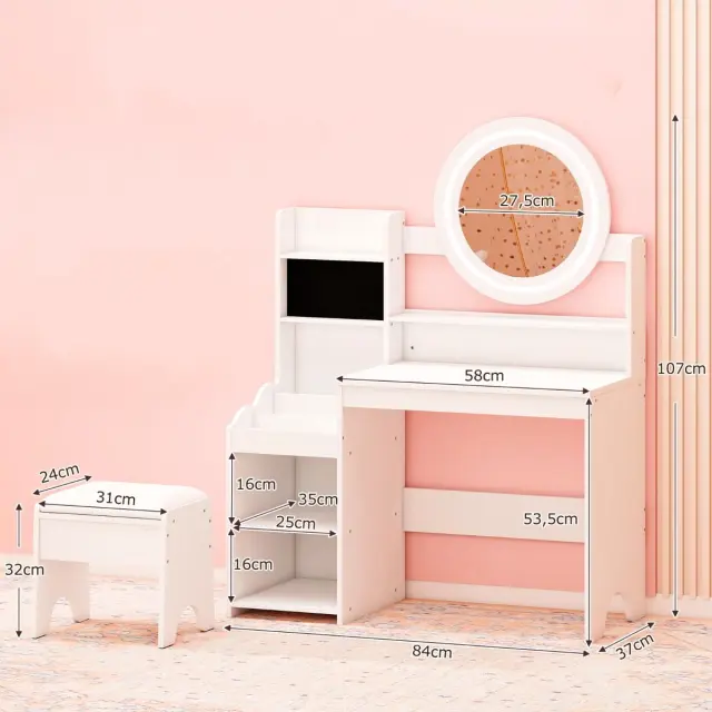 Otroška toaletna mizica z ogledalom LED toaletna mizica bela