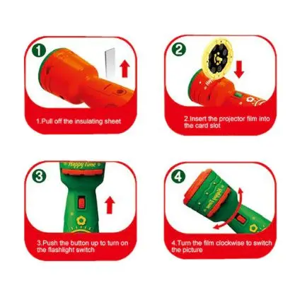 【enostavno upravljanje】 Če želiteuporabljati projektor, preprosto povlecite plastični pokrov, da zamenjate diapozitiv, nato pa vstavite želeno ploščo. Zavrtite ali prilagodite ploščo, da opazujete projicirano sliko. Za optimalne rezultate ga uporabljajte v temnem prostoru z razdaljo projiciranja 50-150 cm, da ustvarite jasne in natančne slike. njegova kompaktna velikost je kot nalašč za rokovanje z otroki in enostavna za prenašanje. Poleg tega se lahko uporablja kot svetilka, ki otrokom ponoči zagotavlja občutek varnosti!