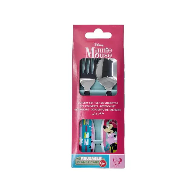 Naj bo vsak obrok bolj zabaven z otroškim jedilnim priborom z motivom Minnie. Set vsebuje žlico in vilico, prilagojeno majhnim rokam otrok starejših od 4 let. Pribor je izdelan iz kakovostnega nerjavečega jekla, ročaj pa krasi barvit potisk s priljubljeno Disneyevo junakinjo Minnie. Za ohranitev kakovosti in potiska, pribor pomijte ročno.