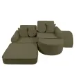 Vsestranska modularna konstrukcija: Sedežna garnitura je sestavljena iz 14 elementov, ki jih je mogoče poljubno konfigurirati in ustvariti različne postavitve, vključno s polno posteljo. Popolno za otroško sobo, kotiček za igro, bralni prostor in popoldanske dremeže.