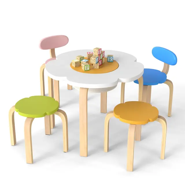 Vsestranski otroški namizni set: set vsebuje 1 mizo, 2 stola in 2 stolčka ter spodbuja vaše najmlajše k učenju ali igri s prijatelji. Primerna je za različne dejavnosti, kot so risanje, branje, sestavljanje kock in sestavljanke.