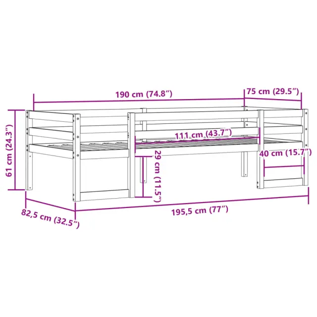 Otroški ležaj - Otroški posteljni okvir voščeno rjav 75x190 cm trdna borovina-J2855