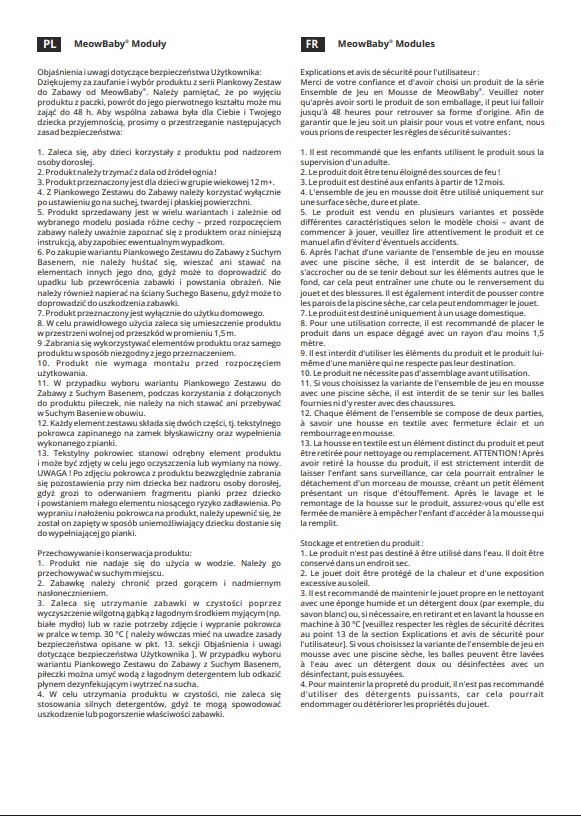 Vstopite v svet neskončne igre z MeowBaby® setom iz žametnih gradnikov! Naš set ni le atrakcija, ampak tudi praktičen element opreme v otroški sobi. Sestavljen iz mehkih modulov, omogoča ustvarjanje različnih konfiguracij – od udobnega kavča do varnega bazena s kroglicami ter velikega igrišča. To je prostor, kjer lahko vaš otrok raziskuje, razvija svojo domišljijo in ustvarja nepozabne spomine!