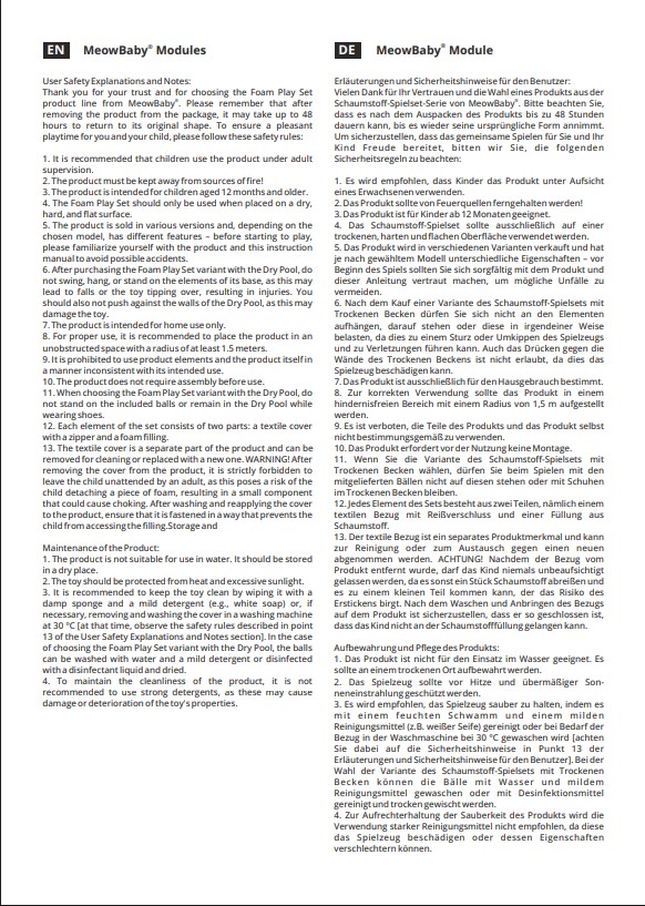 Odlična izbira za starše, ki želijo na kreativen, varen in vesel način podpreti razvoj svojih otrok. Set MeowBaby® iz pene zagotavlja ure aktivne in zabavne igre.