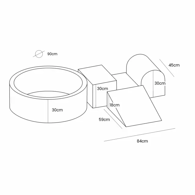 Otroški motorični park – otroško igrišče iz pene s 4 elementi in bazenom, 200 kroglic, Aesthetic
