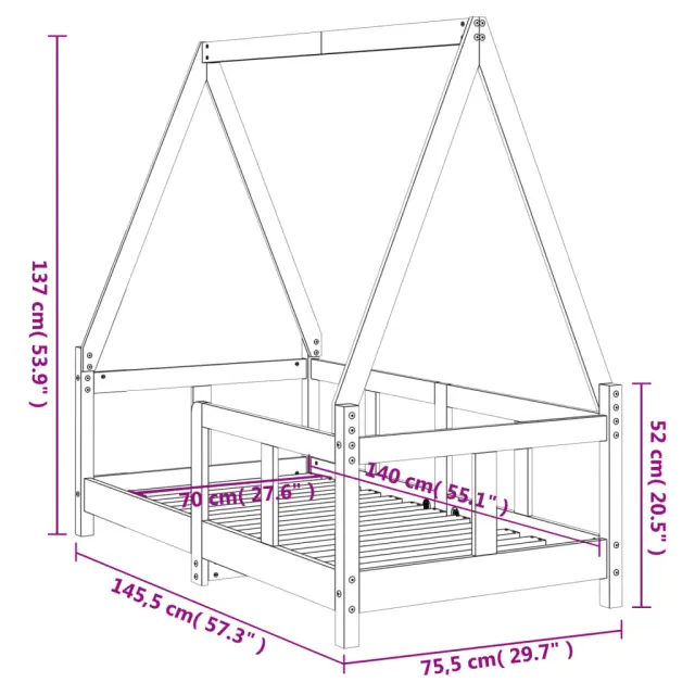 Otroški posteljni okvir - Otroški ležaj bel 70x140 cm trdna borovina-J2812