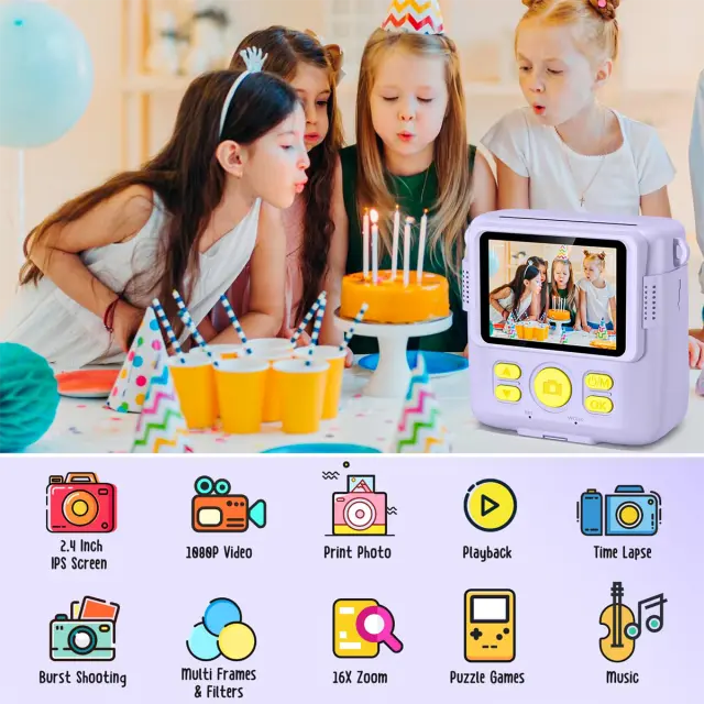 Otroški termo tiskalnik s fotoaparatom za takojšnje tiskanje - mini otroški darilni tiskalnik za takojšnje tiskanje