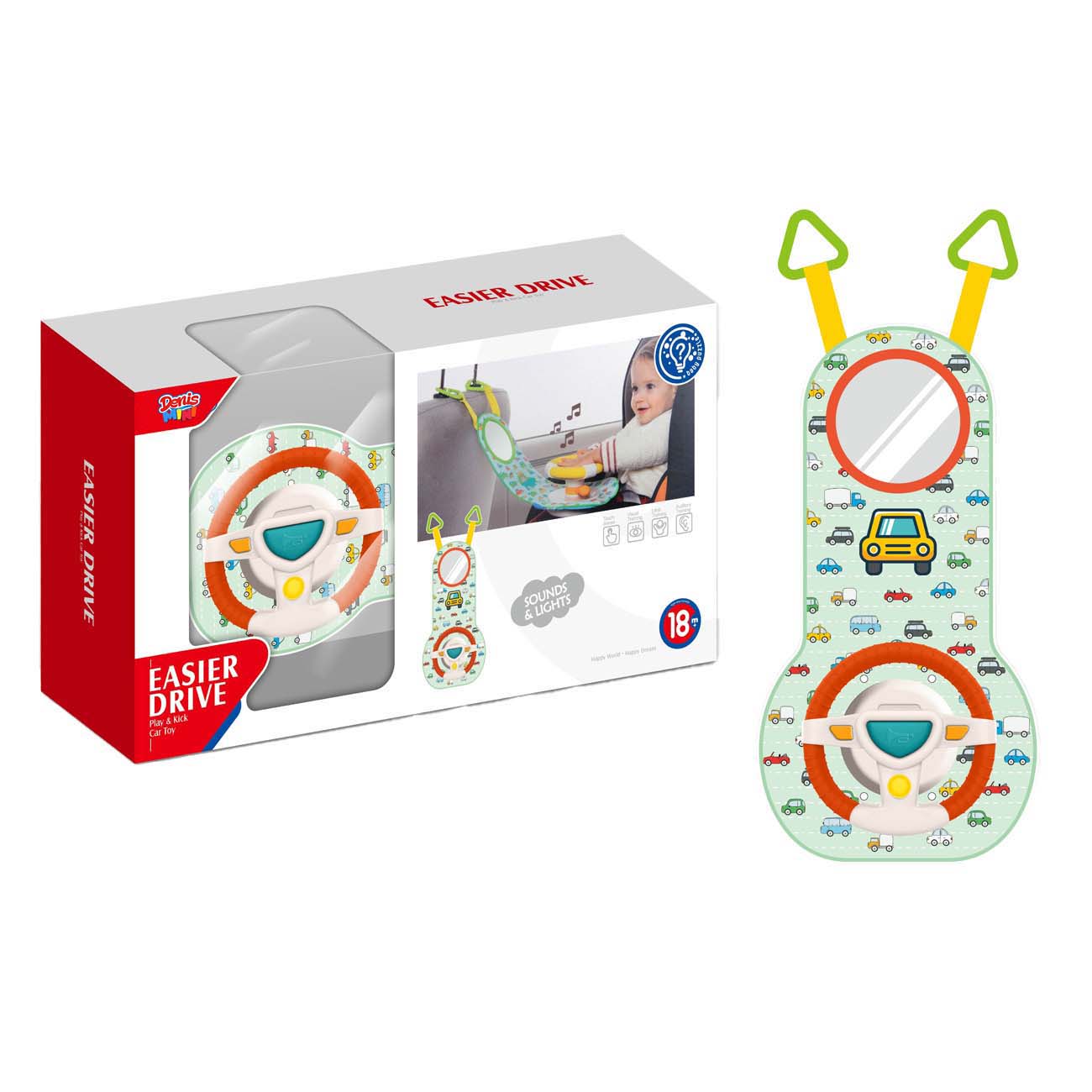Je vaš malček med vožnjo nemiren? Ali odvrže igrače, ki jih ne morete doseči? Nič več dolgčasa med vožnjo s tem igralnim kompletom. Otroški volan s prestavno ročico, ki s svetlobo in zvokom (avtomobilska hupa, zvok motorja) ter glasbenimi efekti posnema realne situacije in poskrbi za neskončno zabavo. Igračo enostavno pritrdite na naslonjalo prednjega sedeža z dvema velikima plastičnima sponkama in je nastavljiva po višini. Igrača bo brez motenj zaposlila vašega otroka med vašo vožnjo. Ta volan je primeren za vse modele vozil. Popolna igrača v vozilu za kratke in dolge vožnje. -Vrsta: otroška igrača. -V kompletu: 1x elektronski volan. -Lastnost: Igrača zagotavlja zabavo za majhne otroke, ki sedijo v avtomobilskih sedežih, in jim omogoča, da posnemajo voznikova dejanja. -Oprema: očala, menjalnik, nastavljivi pasovi, vrtljivi volan in menjalnik, plastične sponke za obešanje, zvočni, glasbeni in svetlobni efekti. -Za delovanje potrebne baterije: 3x AA 1,5V, priložene. -Material: trdna ABS plastika, bombaž. -Starost: 18 mesecev+. -Velikost igrače: pribl. 60(v)x10,5x21(š) cm.