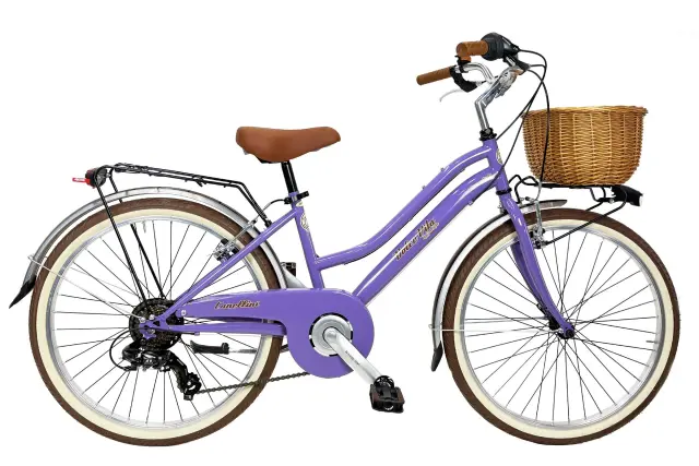 Jekleni okvir 24-palčna kolesa 6-stopenjski menjalnik Aluminijaste V-Brake zavore Aluminijasta gonilka Nosilec krmila in krmilo iz aluminija Sprednja in zadnja LED luč na baterije Vključen pleten košek