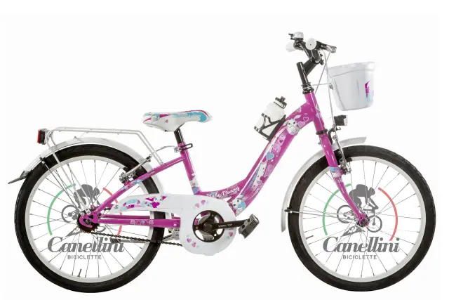 Sprednja in zadnja V-Brake aluminijasta zavora Prosti tek 18 zob Jekleni okvir Plašči in zračnice 20" Sprednja in zadnja luč na baterije Opremljeno s sprednjo košaro in zvončkom Aluminijasto stransko stojalo vključeno