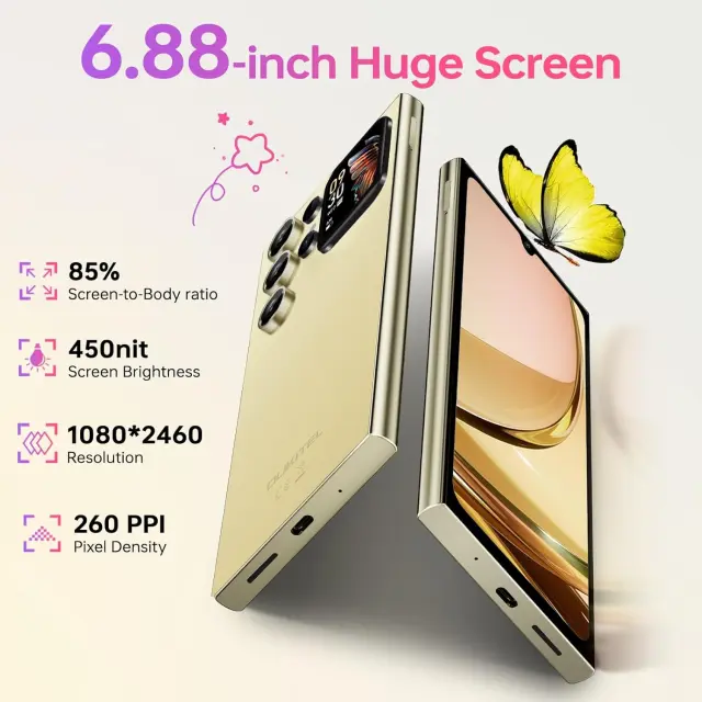OUKITEL C62 Pro 24/256GB črna Pametni telefon Android 15 6,88-palčni zaslon in 1,81-palčni zadnji zaslon, Android 15