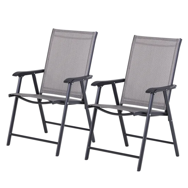 Outsunny Komplet 2 zložljivih zunanjih stolov iz jekla in tekstilnega materiala za vrtno teraso Veranda, siva, 58 x 64 x 94 cm