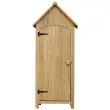Outsunny lesena vrtna lopa z vrati, zunanja omara za vrtno orodje s 3 policami, 77,5x54,2x179,5 cm