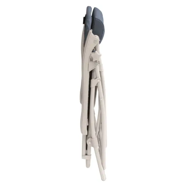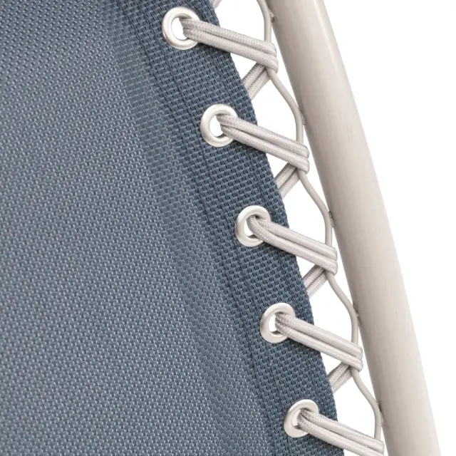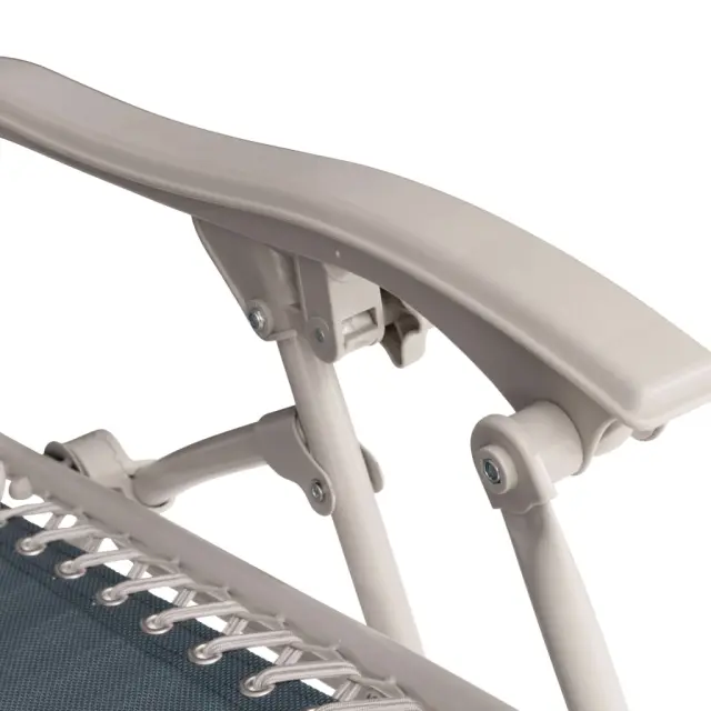 Ta zložljiv stol je izdelan iz trpežnega tekstila z vzdržljivim in izjemno močnim jeklenim okvirjem. Stol ima trpežno tekstilno mrežo s PVC oblogo, ki se hitro suši. Je preprost za čiščenje, nudi udobje in dobro oporo. Nastavljiv in odstranljiv vzglavnik je oblikovan tako, da nudi popolno podporo za vrat. Stol za kampiranje ima tudi drsno funkcijo: naslonjali za roke lahko potisnete naprej in nazaj ter ju zaklenete in tako dosežete najbolj udoben položaj.