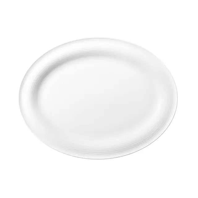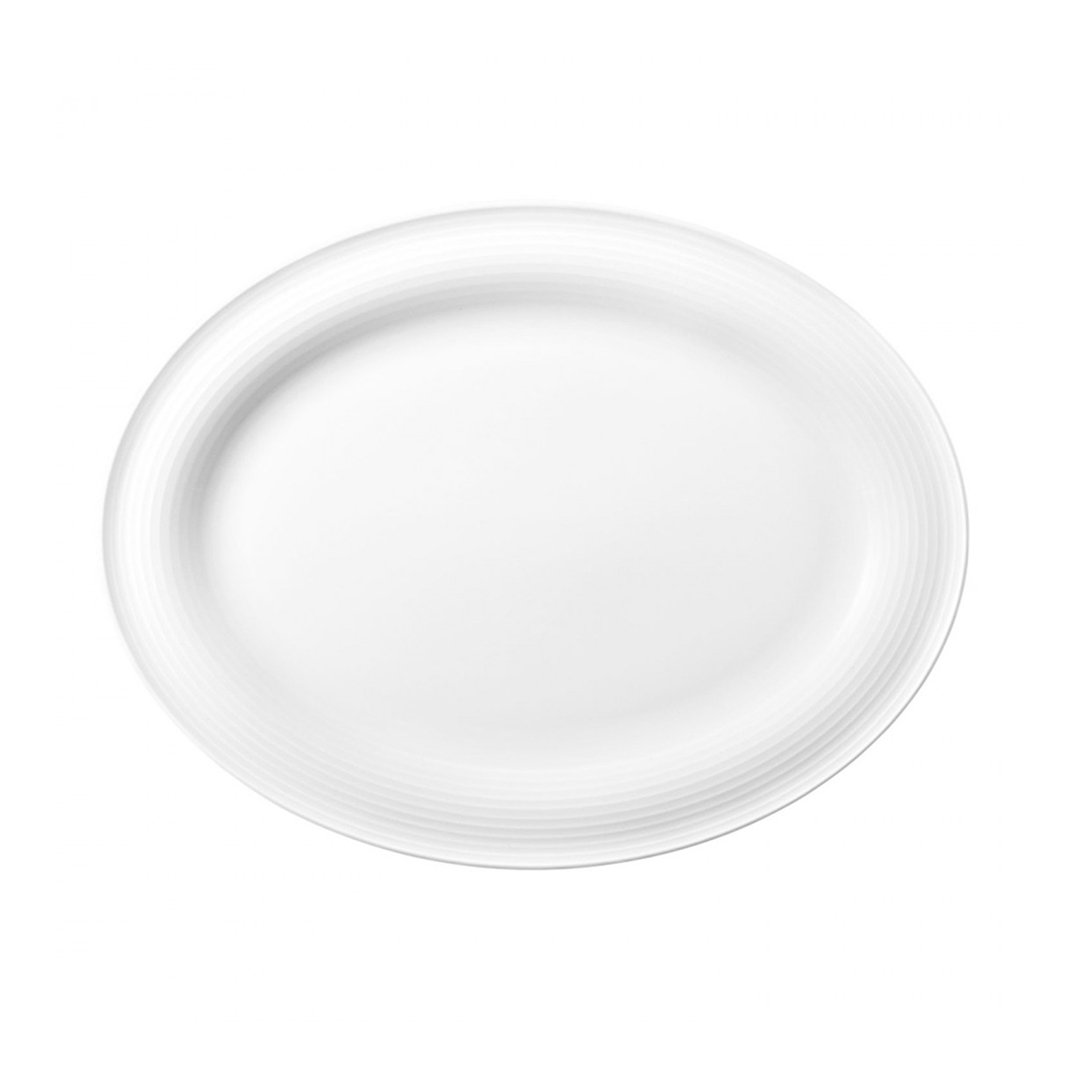 Ovalen plitev krožnik s premerom 31 cm je izdelan iz trpežnega porcelana in je del kolekcija Blues Seltmann. Njegova subtilna okrogla oblika je na robovih poudarjena s črtastim vzorcem, ki mu daje sodoben in hkrati eleganten pridih. Idealen je za serviranje narezkov, peciva, sirov, mesa, rib in ostalih prikuh. Primeren je za uporabo v mikrovalovni pečici, pečici in za pomivanje v pomivalnem stroju. Dopolnite ga še z ostalimi izdelki iz linije Blues in ustvarite svojo garnituro krožnikov.