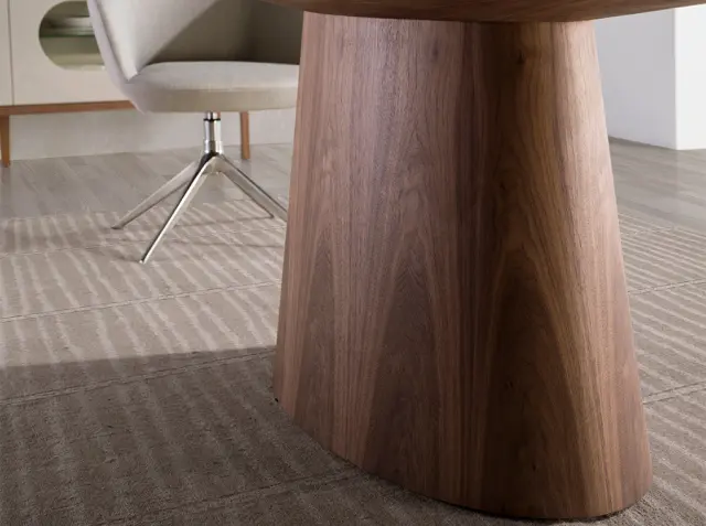 Ovalna jedilna miza iz oreha, model 1013 Angel Cerdá S.L. Jedilna miza s podstavkom in fiksno ovalno ploščo iz 0,5 mm debelega naravnega orehovega furnirja. Kos sodobnega sloga z izvirno in inovativno zasnovo, ki združuje tudi značilno eleganco našega pohištva z največjim udobjem in funkcionalnostjo. - STIL: Ta jedilna miza bo dodala sodoben pridih vsaki vrsti dnevne sobe ali jedilnice. Njena sodobna oblikovna obdelava in ovalno oblikovana plošča ponujata najboljšo kombinacijo sloga in funkcionalnosti. - Vsestranska in funkcionalna oblika omogoča, da se ujema z najnovejšimi trendi v dekoriranju. - KAKOVOST: Vse naše jedilne mize so izdelane iz najkakovostnejših materialov, kar zagotavlja trajno in funkcionalno pohištvo. - DEKORACIJA IN UDOBJE: Oblika te ovalne jedilne mize iz orehovega lesa je idealna za prenos vašega značaja in avantgardne osebnosti skozi jedilnico. - RAZMERE: Zaradi velike velikosti in ovalne oblike boste lahko sprejeli svoje goste in uživali v prijetnih večerih s prijatelji in družino.