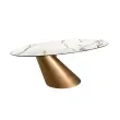 Ovalna jedilna miza s porcelanastim marmorjem in jeklenim sodom bronaste barve