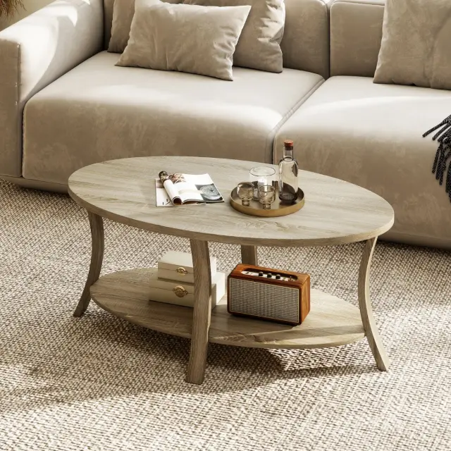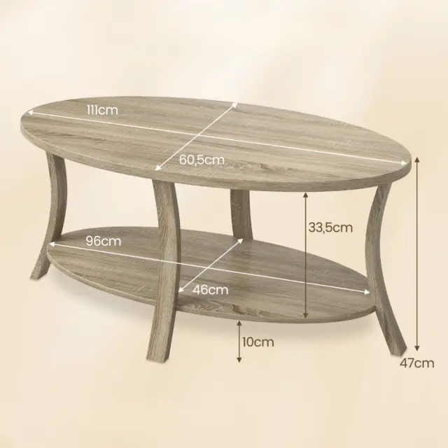 Ovalna mizica s polico Enostavna mizica za dnevno sobo