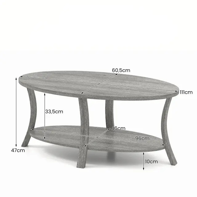 Ovalna mizica s polico Miza za dnevno sobo