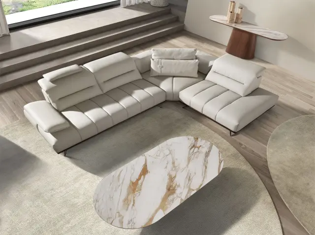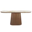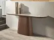 Ovalna polkrožna konzolna mizica iz porcelanastega marmorja in oreha