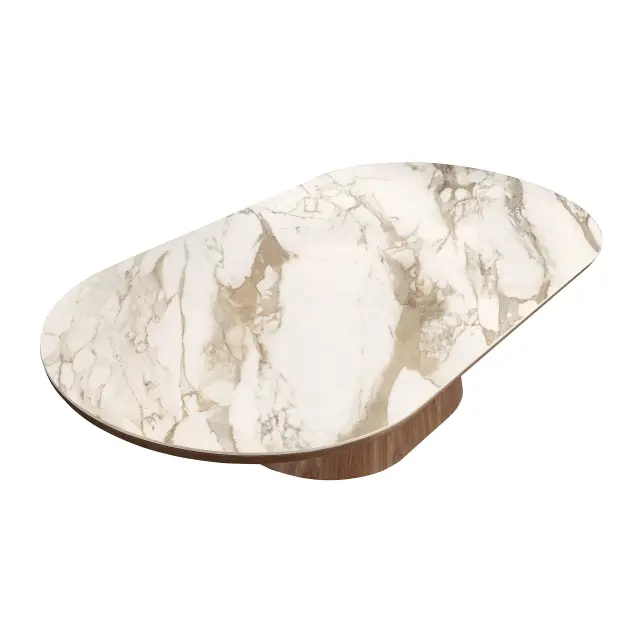 Ovalna polkrožna mizica iz porcelanastega marmorja in oreha model 2160 Angel Cerdá S.L.