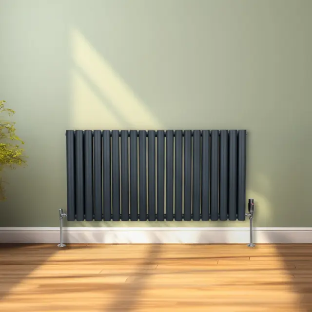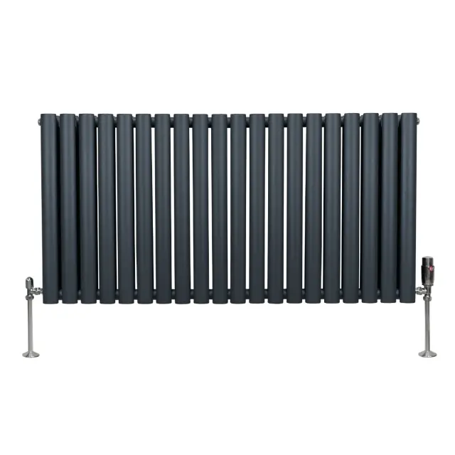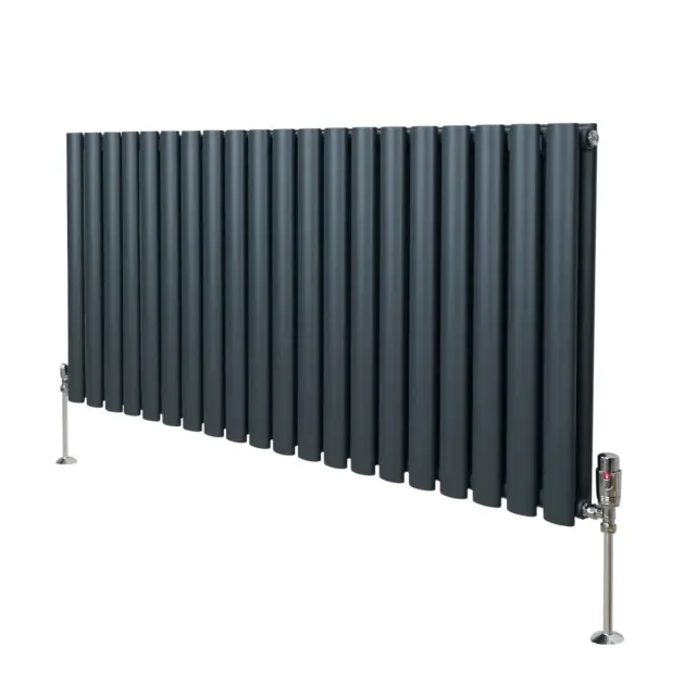 Vnesite toplino v svoj dom z našimi vrhunskimi ovalnimi radiatorji v antracitni barvi in kompletom termostatskih kromiranih ventilov – popolna mešanica brezčasne elegance in sodobne učinkovitosti.