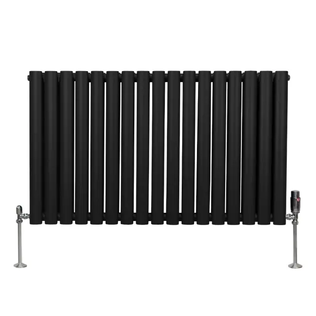 Vnesite toplino v svoj dom z našimi vrhunskimi ovalnimi radiatorji v črni barvi in termostatskim kromiranim ventilom – popolna mešanica brezčasne elegance in sodobne učinkovitosti.