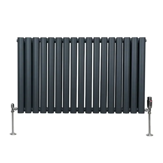 Vnesite toplino v svoj dom z našimi vrhunskimi ovalnimi radiatorji v antracitni barvi in kompletom termostatskih kromiranih ventilov – popolna mešanica brezčasne elegance in sodobne učinkovitosti.